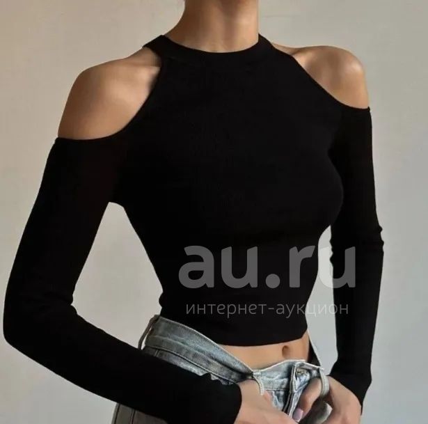 Кроп топ с открытыми плечами.