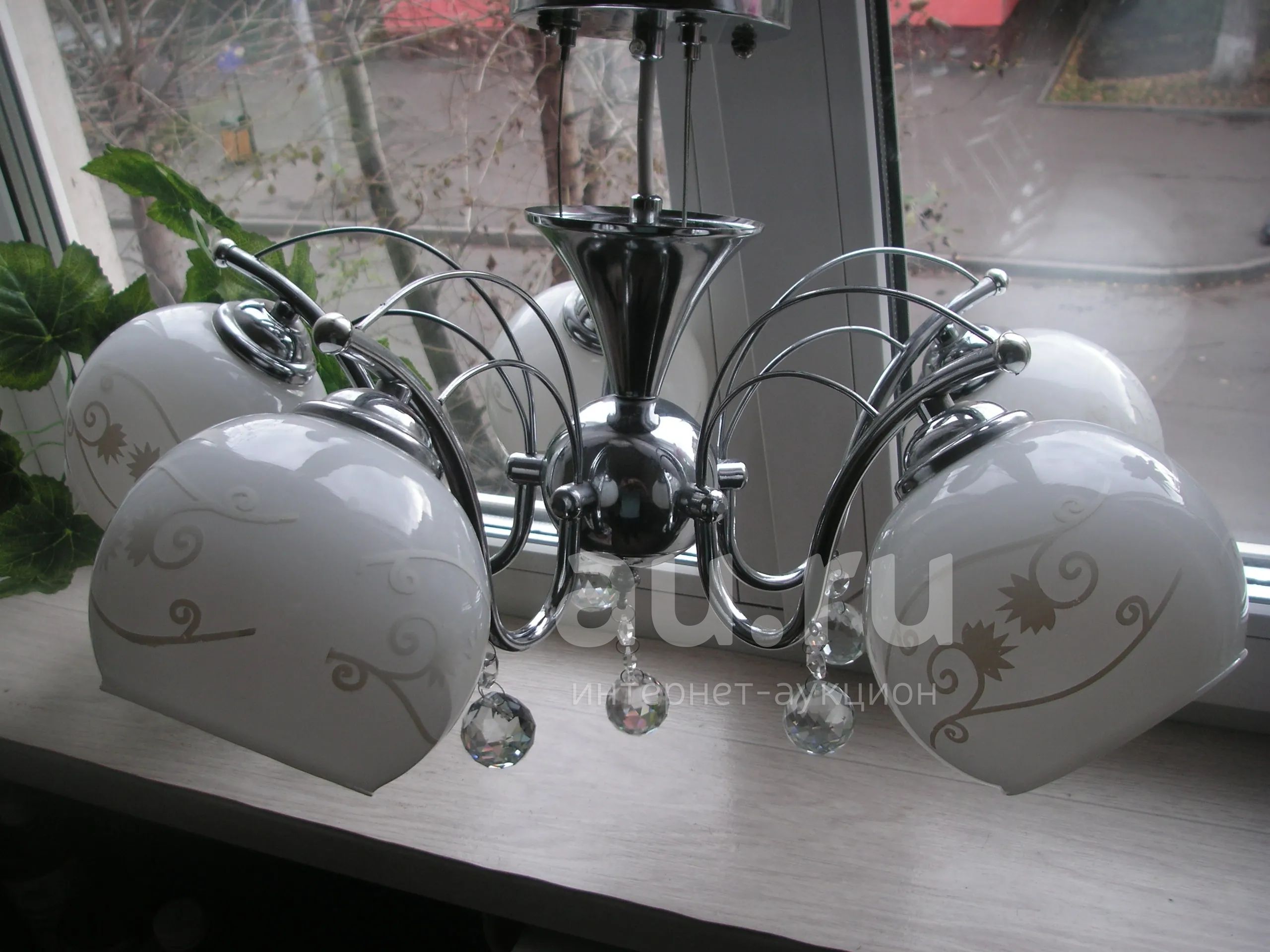 Люстра 5 плафонов, хрустальные подвески.