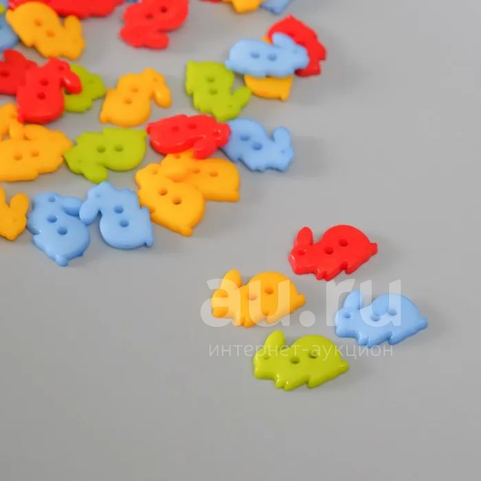 Пуговица 2 прокола «Цветные зайчики», 1 шт., 1.3×1.7 см