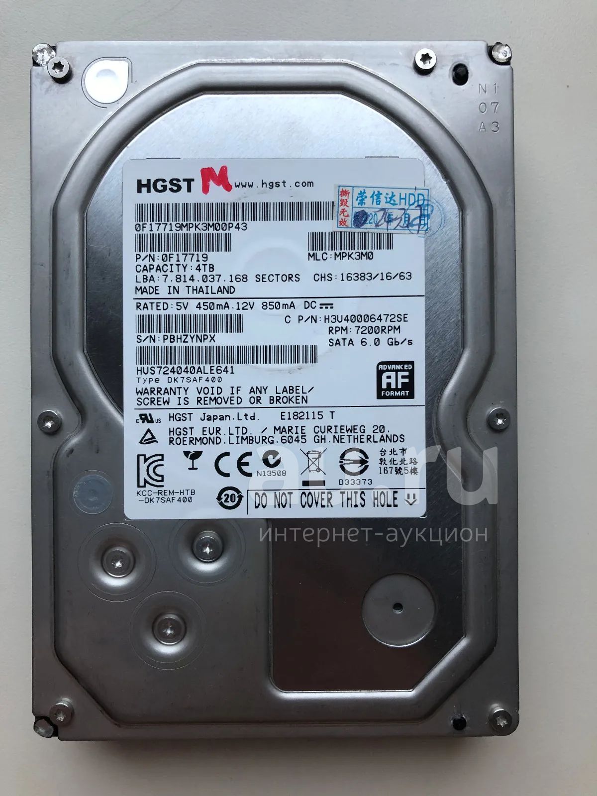 Неисправный SATA-III 4Tb HGST HUS724040ALE641 (стучит)