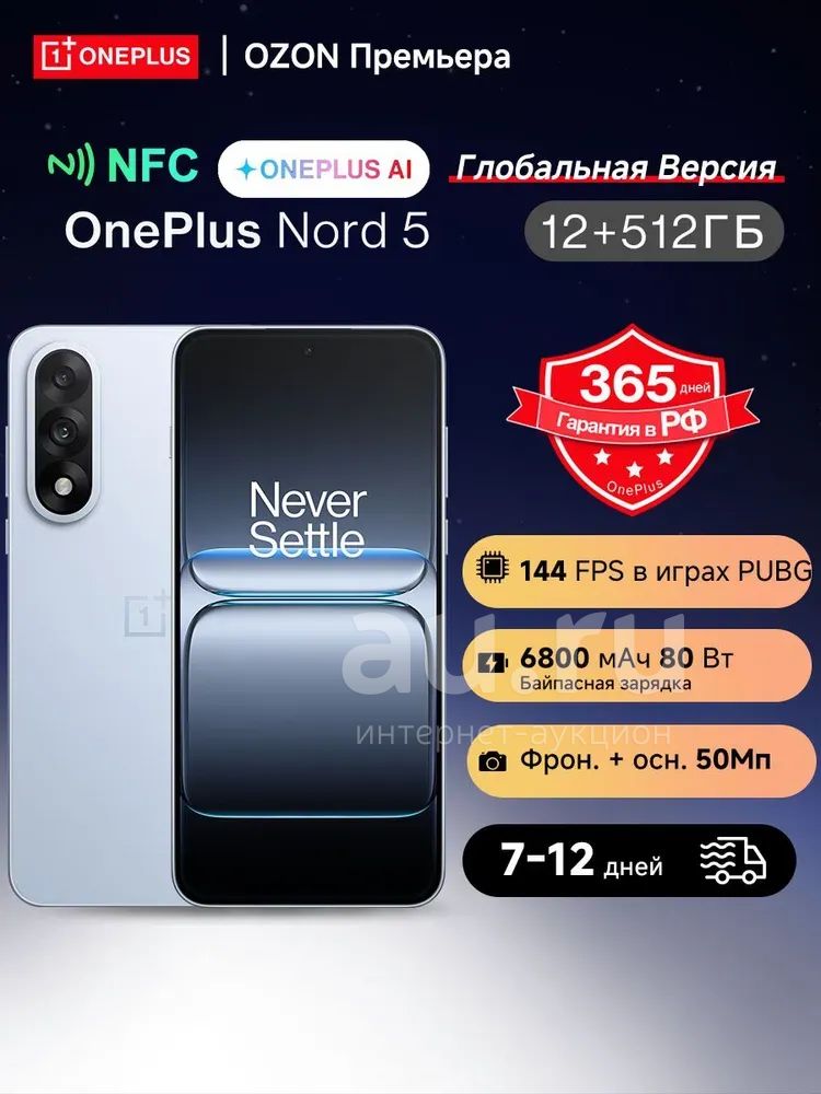 OnePlus Nord 5 5G 512Гб \ 12Гб (+12Гб)\Dry Ice\Global\Amoled 1,7K 6,8...