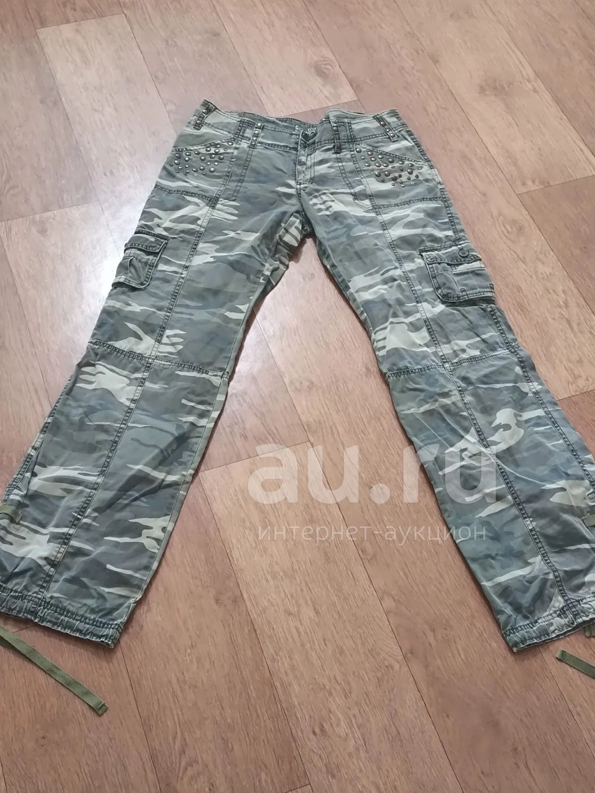 Штаны походные, сидящие на бедрах, с карманами. Размер 42-44. Внизу на кулиске затягиваются