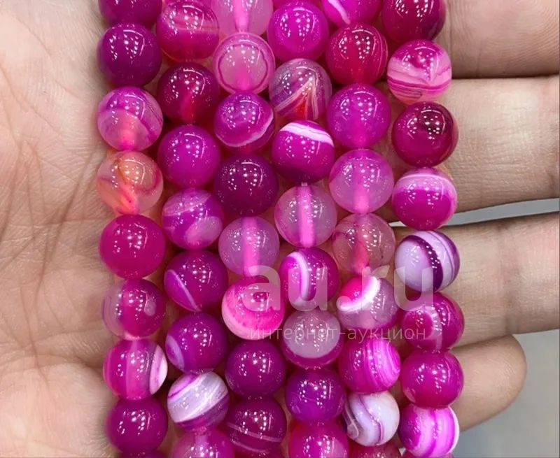 12руб.Агат фуксия-розовый, полосы граненый