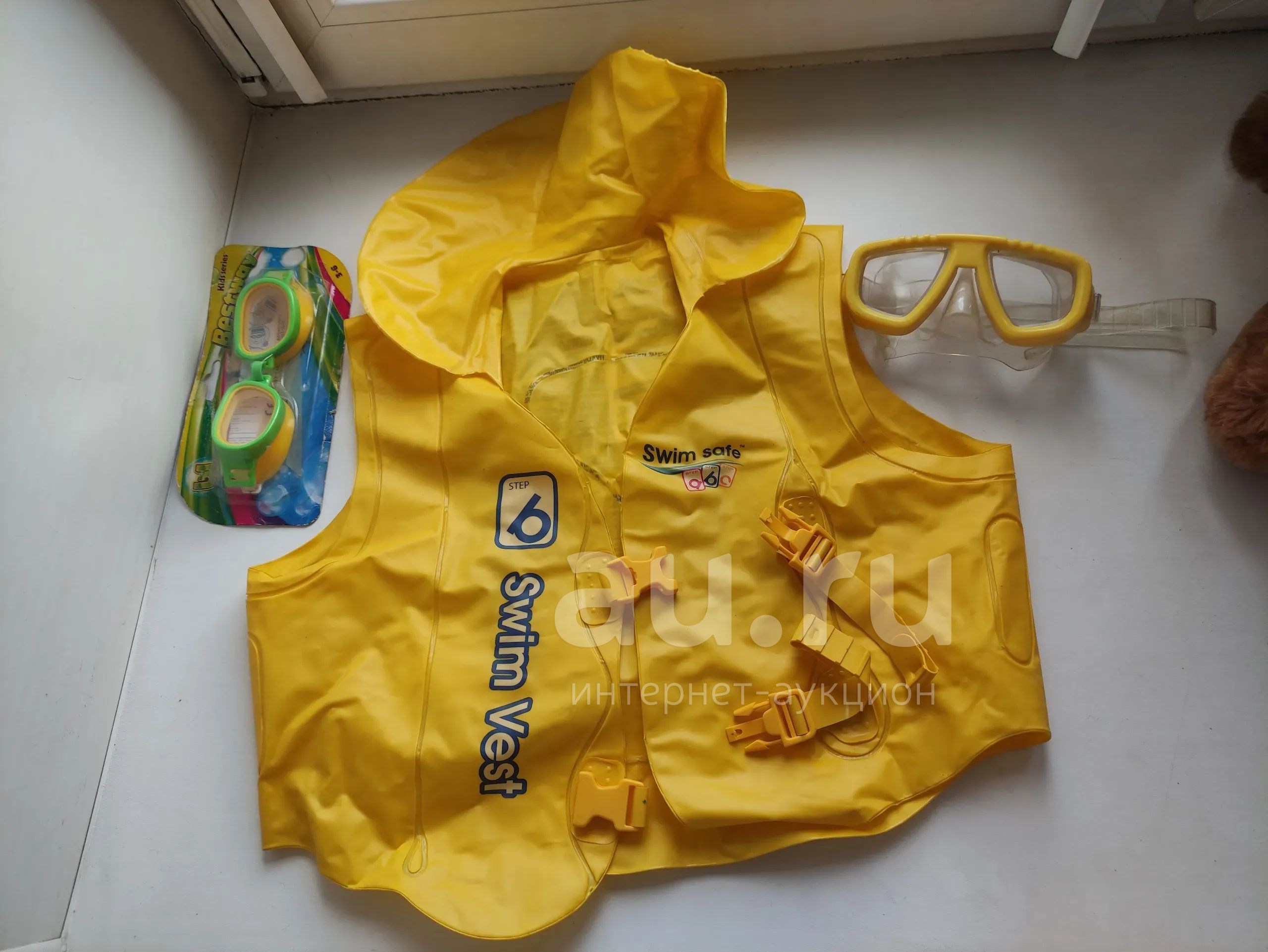 Набор для плавания детский жёлтый: жилет, очки и маска.