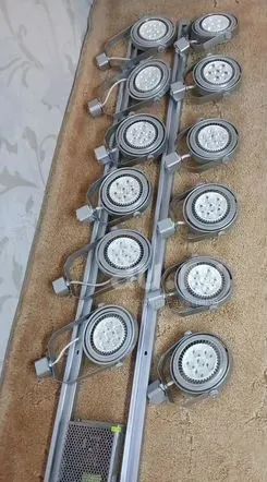 двенадцать высококачественных светодиодных светильников на двух шинах по 3 метра, блок питания прилагается.