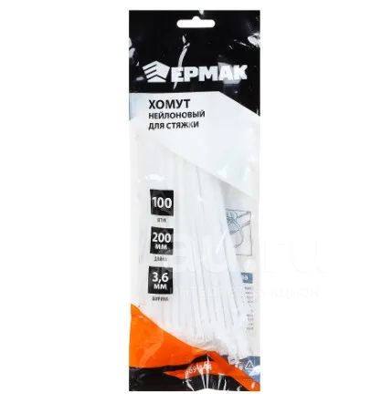Хомут ленточный нейлон стяжка 200*3,6мм Ермак белые 100шт 669-144