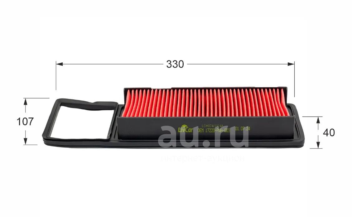 Воздушный фильтр LivCar для HONDA. Размеры: 330x107x40. Соответствующие OEM-коды: 17220-PWA-003
