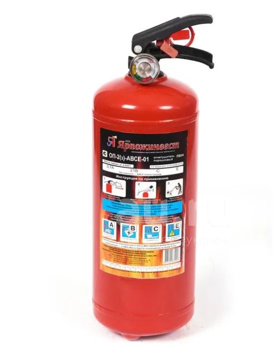 Огнетушитель перезаряжаемый Ярпожинвест ОП-2 з устройство представляет небольшой цилиндрический баллон красного цвета с закачанным внутрь материалом. Укомплектовывается сертификатом соответствия качества, паспортом.
