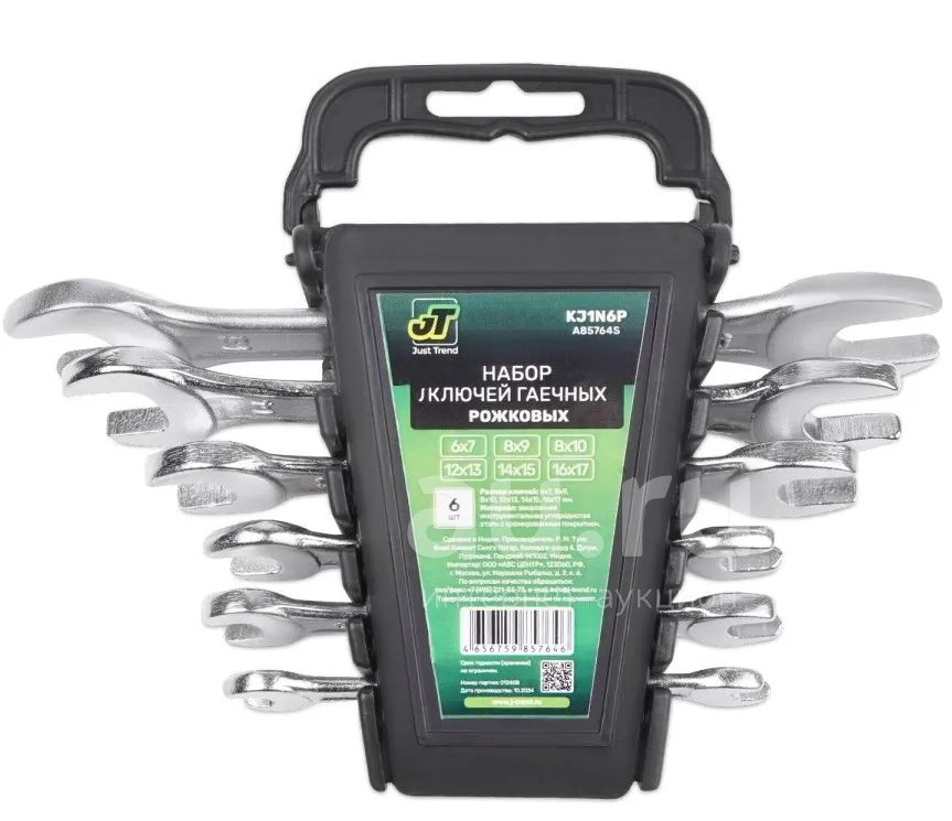 Ключи рожковые JT 6 предметов профессиональные 8-19мм в боксе
