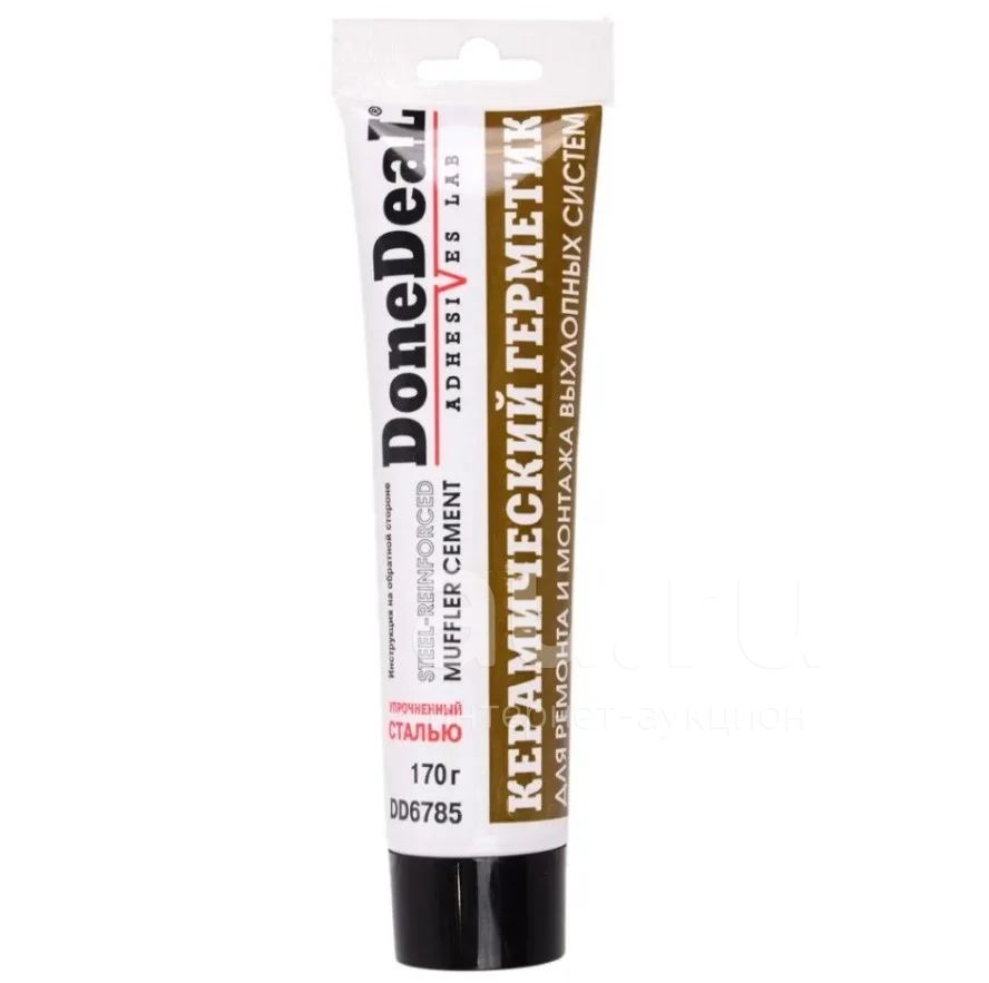 Керамический герметик для ремонта и монтажа выхлопных систем 170 г. Done Deal DD6785 обеспечивает полную герметичность соединений. Также он устраняет выброс выхлопных газов из прогоревших отверстий и трещин конвекторов, глушителей, концевых и соединительных труб. Цвет герметика - стальной. Время схватывания - 5-10 минут.
