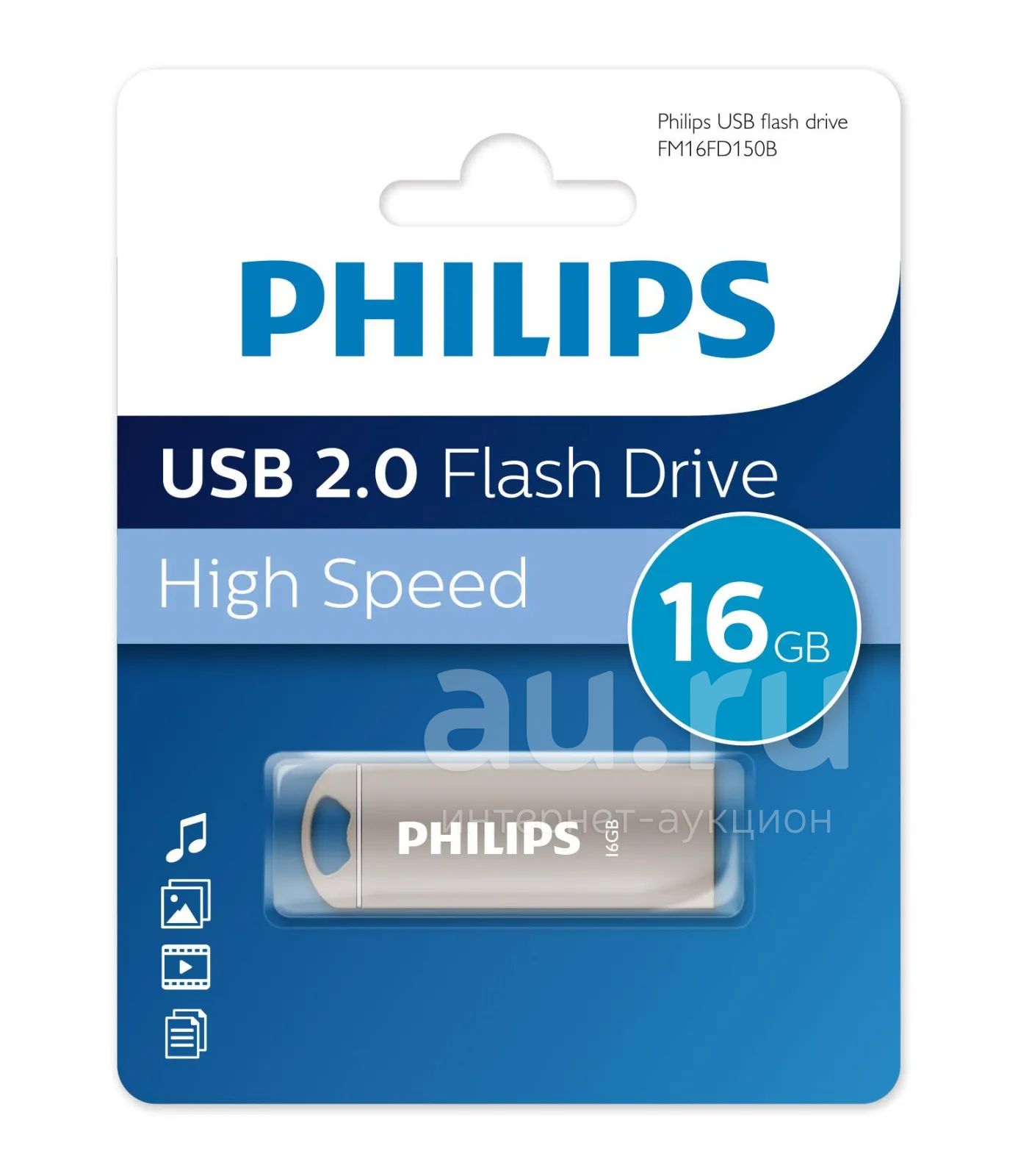 266руб.Флешка USB 16 ГБ Philips IRON 2.0, металл (FM16FD150B/ 97)