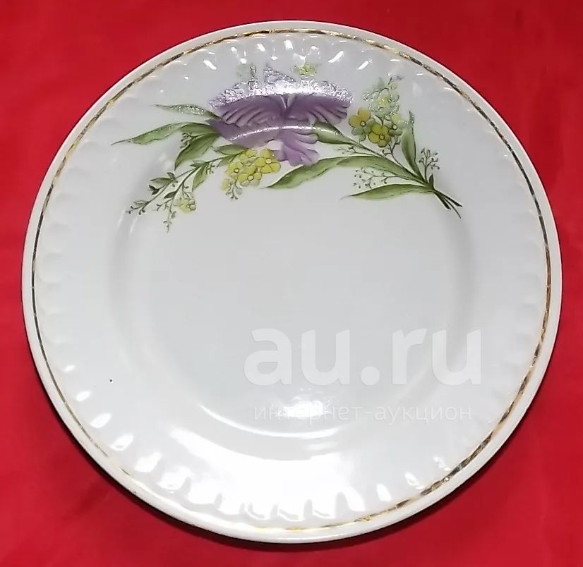 (№5570-У/CI-II) тарелка мелкая "Цветы" (Прокопьевcкий фарфоровый завод) (СССР)