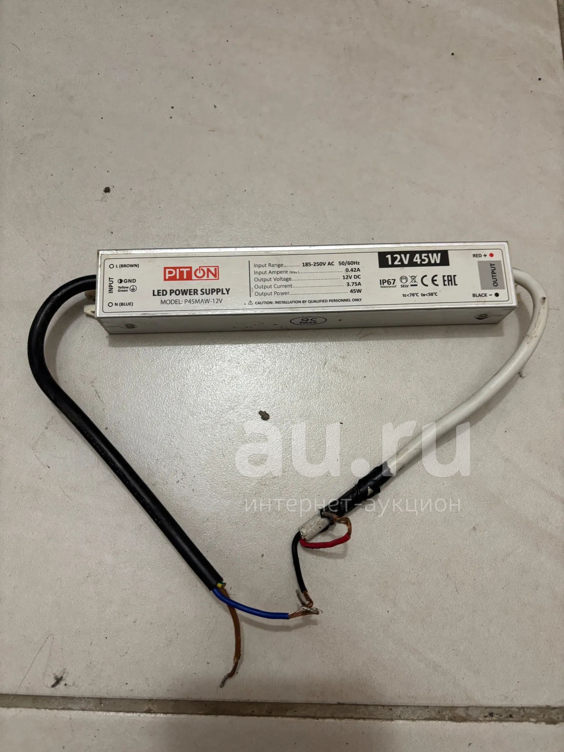 Блок питания для светодиодной ленты 12V 45W IP67