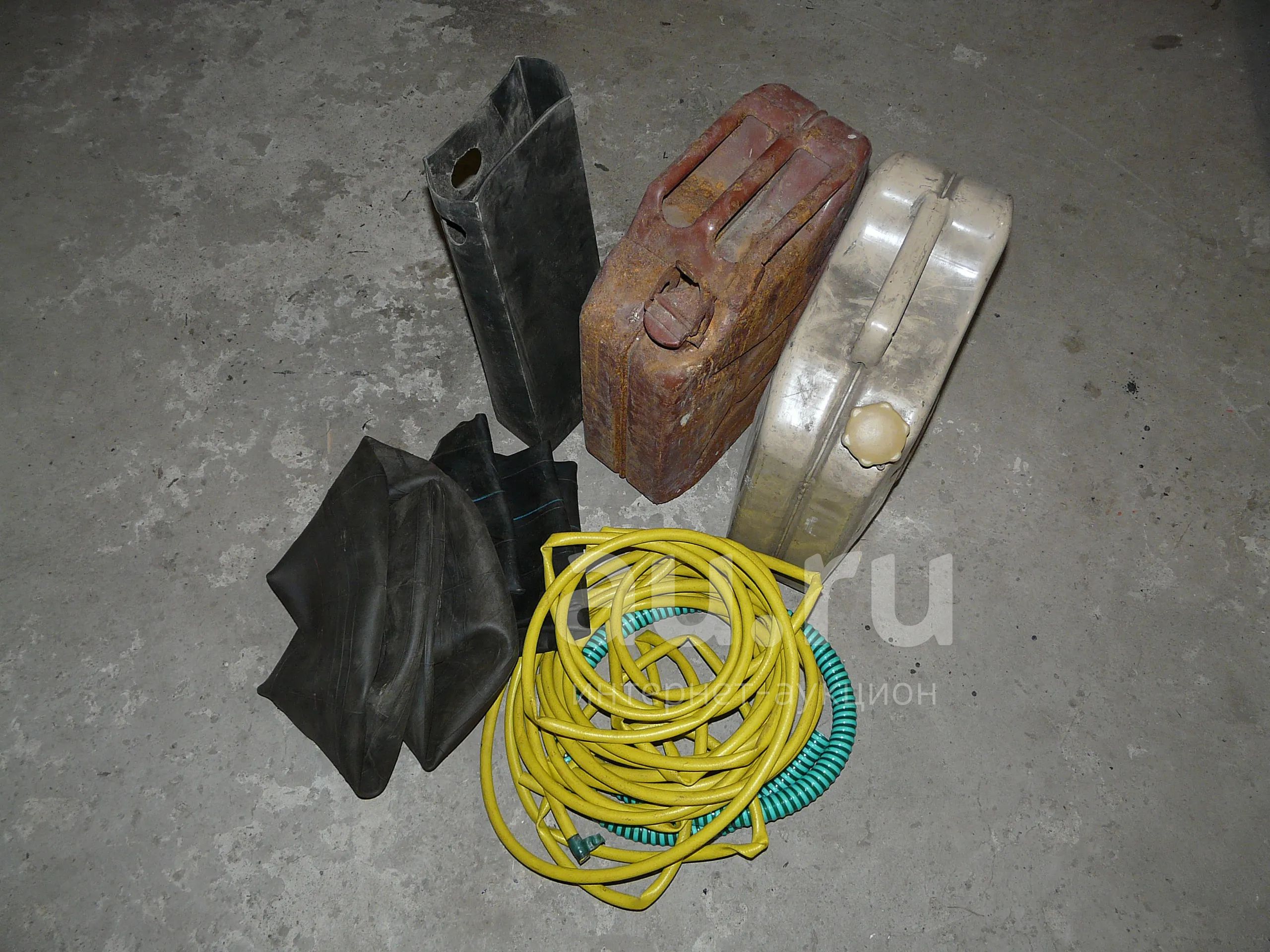 Разбор гаража. Канистры целые но вид не очень. Одна камера взорванная, вторая без соска. Обрезки шлангов и резиновое ведро. Без претензий с рубля.