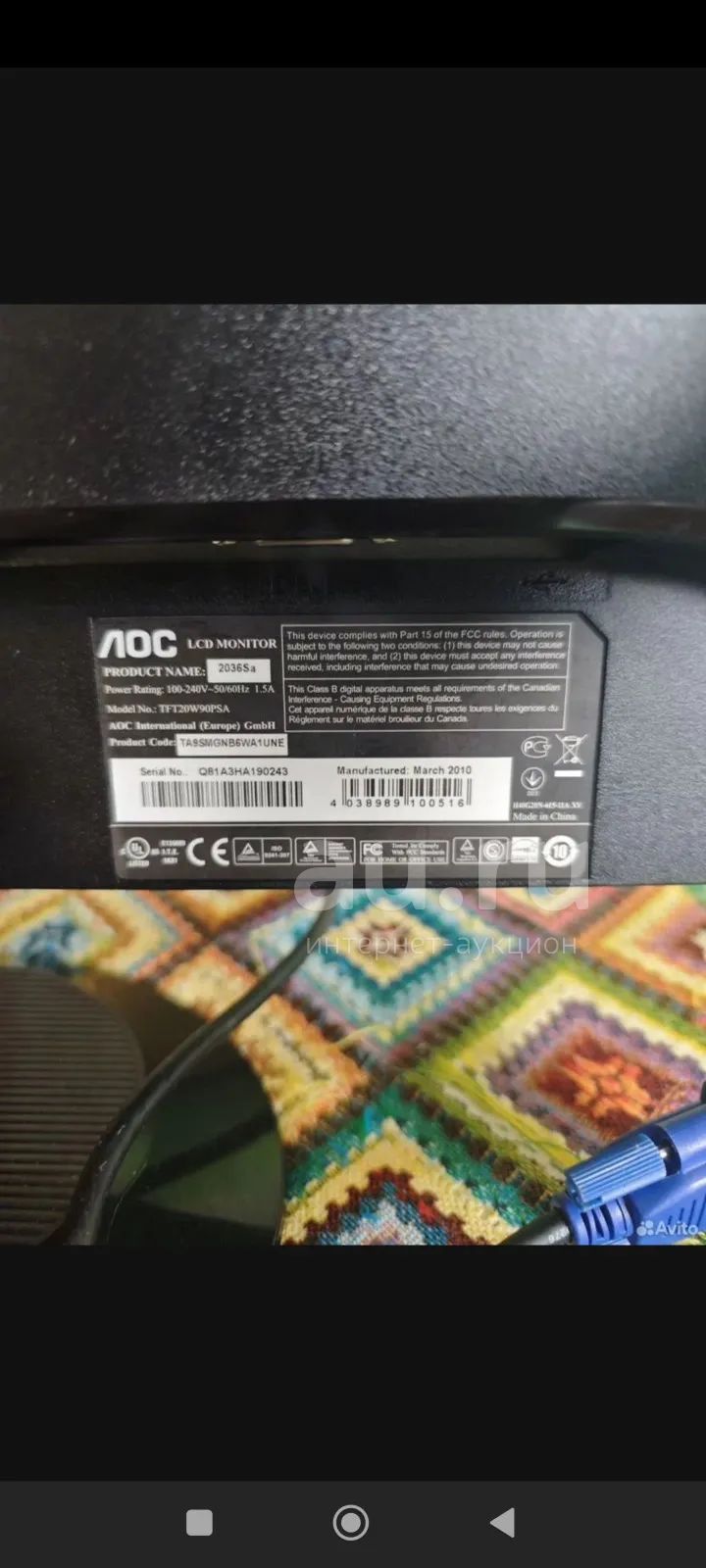 Монитор AOC 2036Sa, 1600x900, TN+film, черный Код товара:
