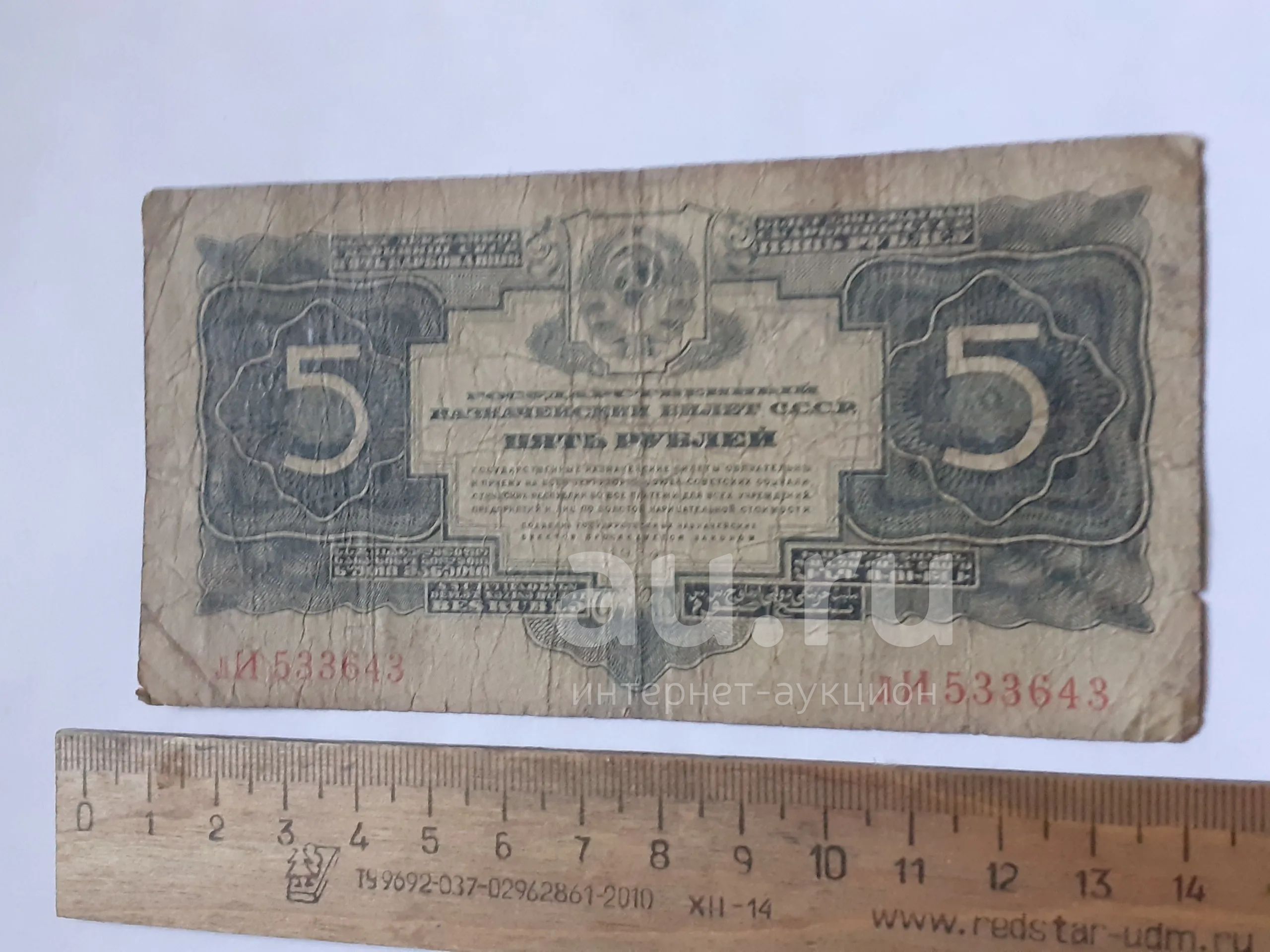 банкнота 5 рублей 1934 года СССР,без подписи