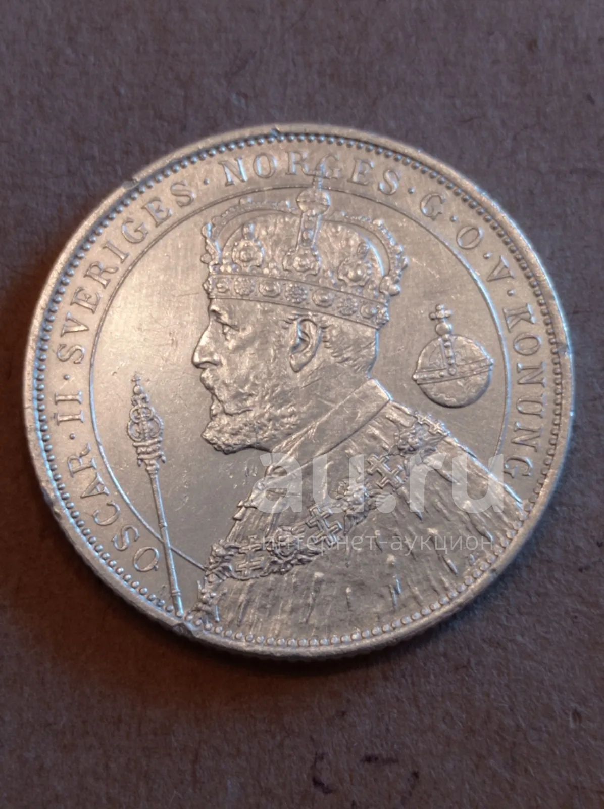 1 200 руб.2 кроны 1897 г. Швеция. Король Оскар ||. 25 лет на престоле. Серебро
