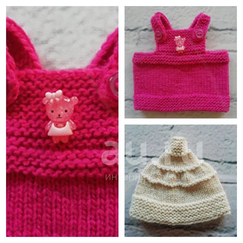 9 000 руб.Вязаная одежда: сарафанчик и шапочка с острой макушкой.