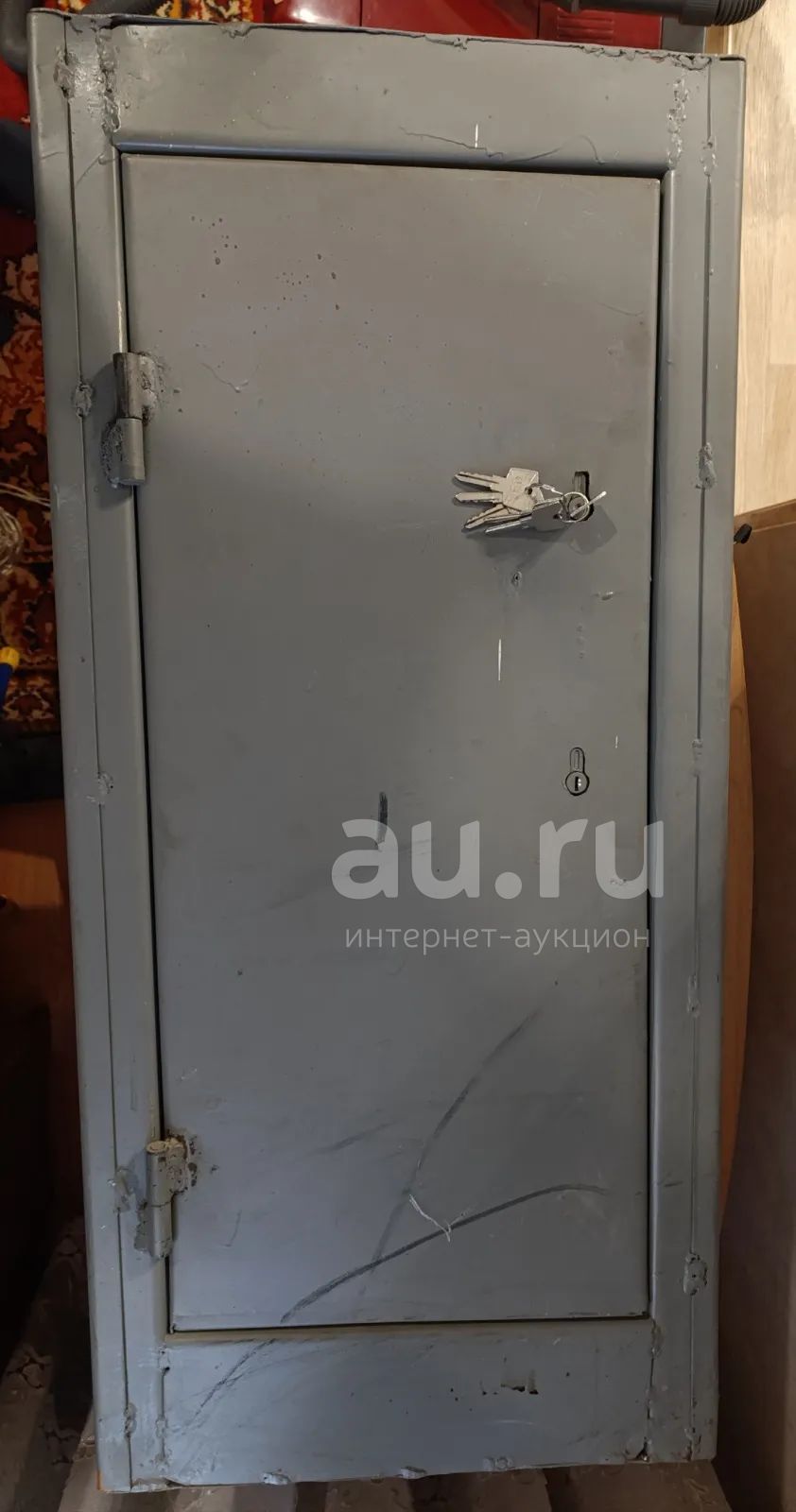 Большой металлический сейф, самодельный, металл 2 мм, хранилось несколько ружей. Имеются две ячейки под патроны. Два замка по 3 ключа к каждому.
