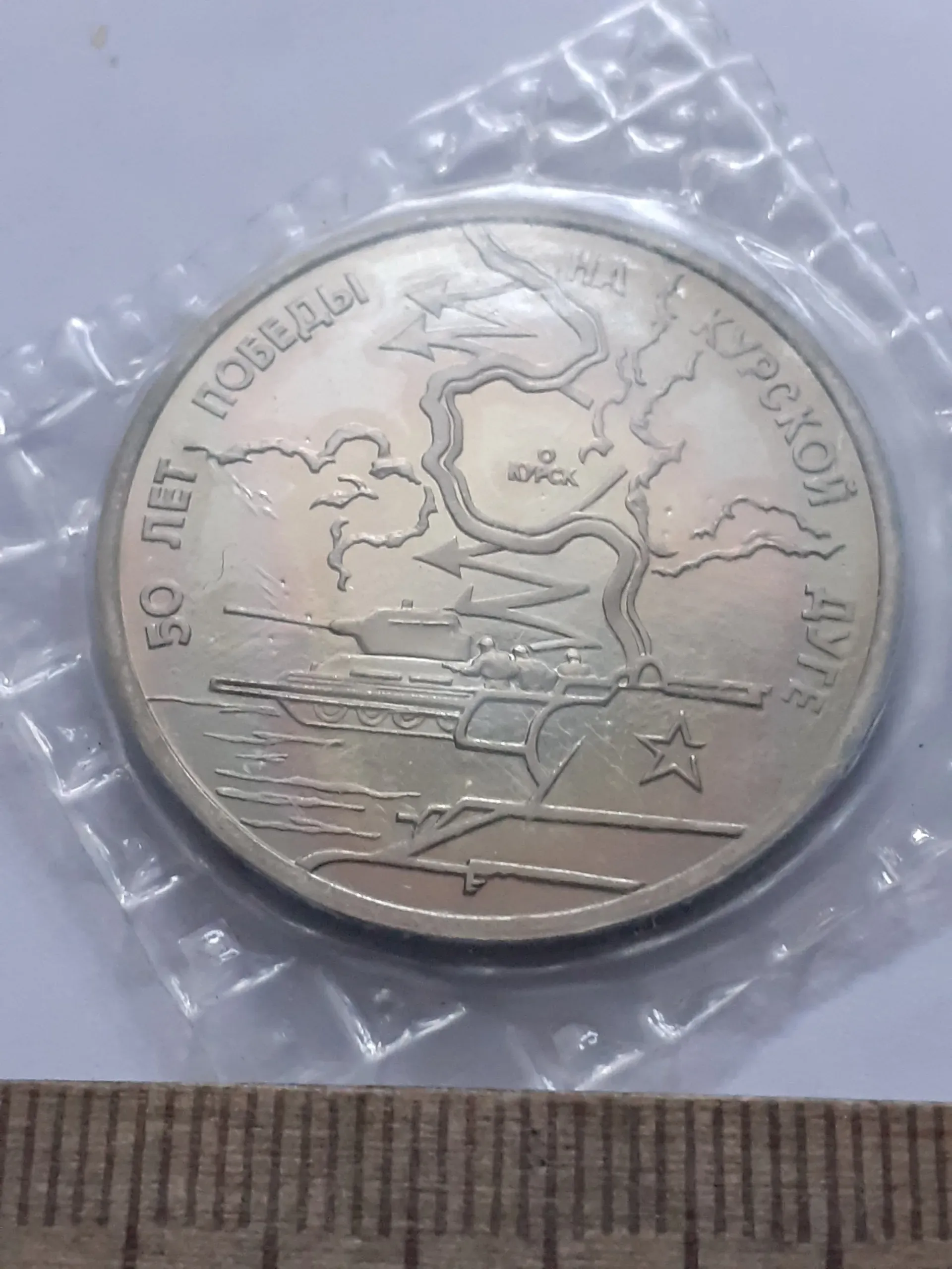 20 руб.(№16221) 3 рубля 1993 год, 50 лет победы на Курской дуге,пруф,упаковк...