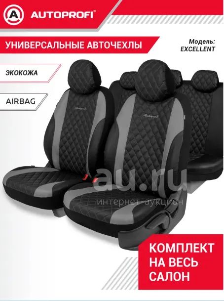 Чехлы на сиденья передние и задние в авто Autoprofi Excellent 1103 G BK/ D.GY черный / Материал - экокожа / автомобильные в машину / Авточехлы / Универсальные
