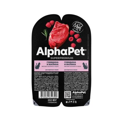 Консервы для кошек АльфаПет СуперПремиум 80гр - Соус - Говядина/Малина