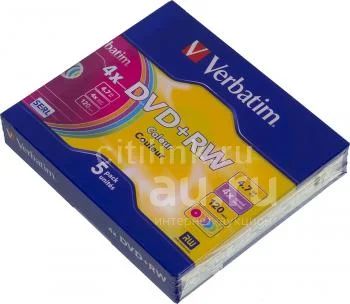 Оптический диск DVD+RW verbatim 4.7Гб 4x, 5шт., slim case, разноцветные