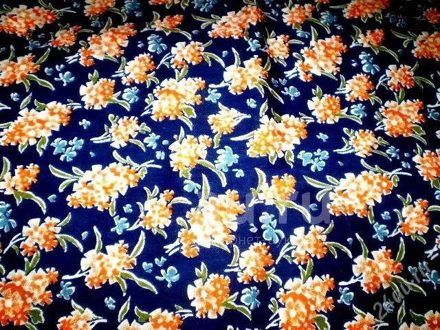 Отрезок ткани х/б с оранжевыми цветочками