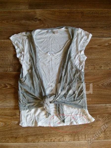 футболка с жилетом ла редут 2в1. на ог примерно 85см. ширина по подмышкам 45см. есть два пятна голубых, бледных, на фото отметила, надо отбелить. состояние хорошее. жилет можно отпороть и носить с другими майками.