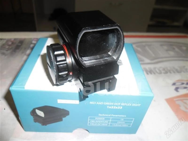 новый калиматорный прицел. 4 вида мушки . два цвета мушки . корпус металл
