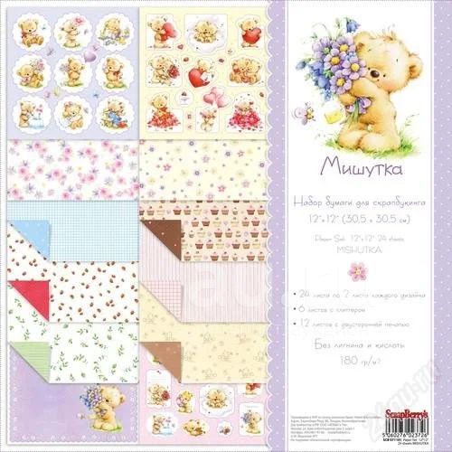 Набор бумаги с глиттером 24 листа 30,5*30,5 см 180 гр/м мишутка