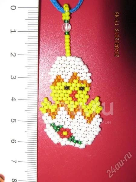 Подвеска из бисера "Цыпленок в яйце".Материал нить+цветной бисер(Чехия).