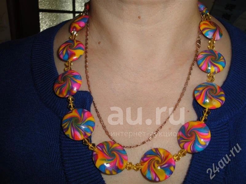 Изделия из полимерной глины колье "Веселая радуга"техника чечевички