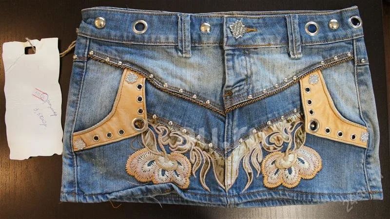 супер Джинсовая мини юбка с кожей новая