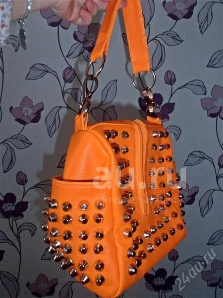 Сумка летняя ярко-оранжевая с шипами // Новая