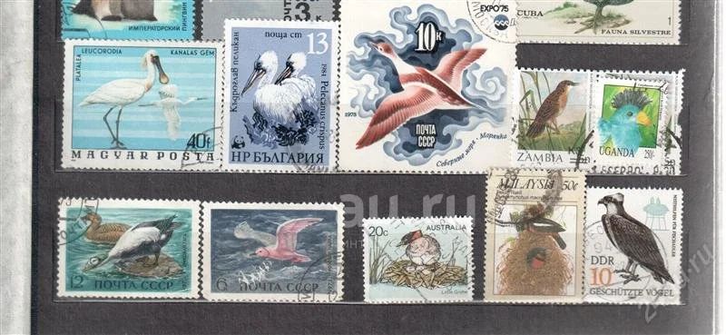Почтовые марки Птицы 35 штук (1 сцепка) СССР,Куба, Венгрия, Болгария, ГДР, Замбия, Уганда, Австралия, Малайзия
