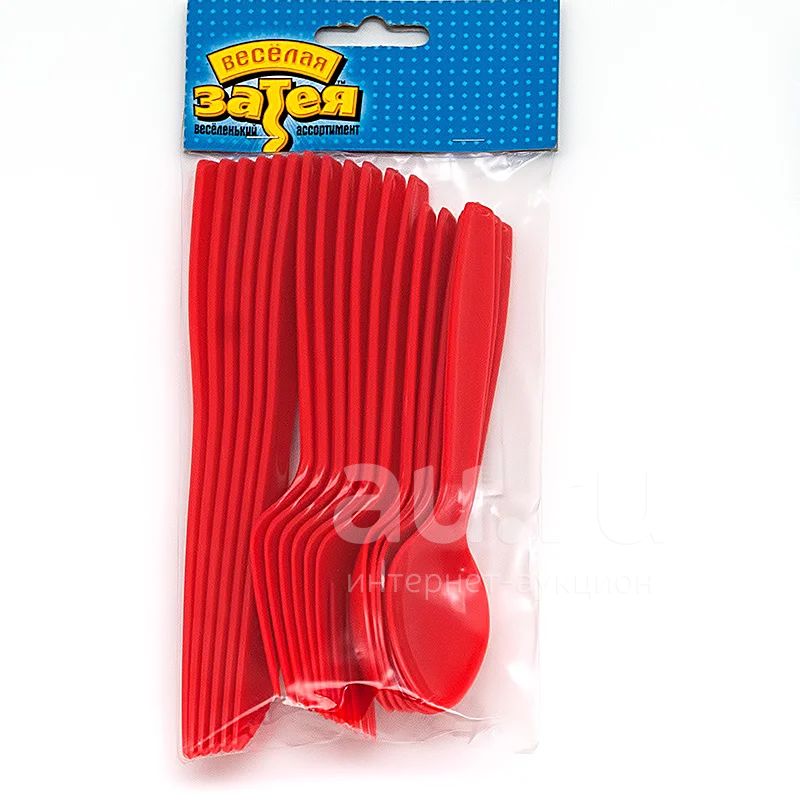Столовые приборы пласт. Ложки,ножи,вилки набор 18шт. красный