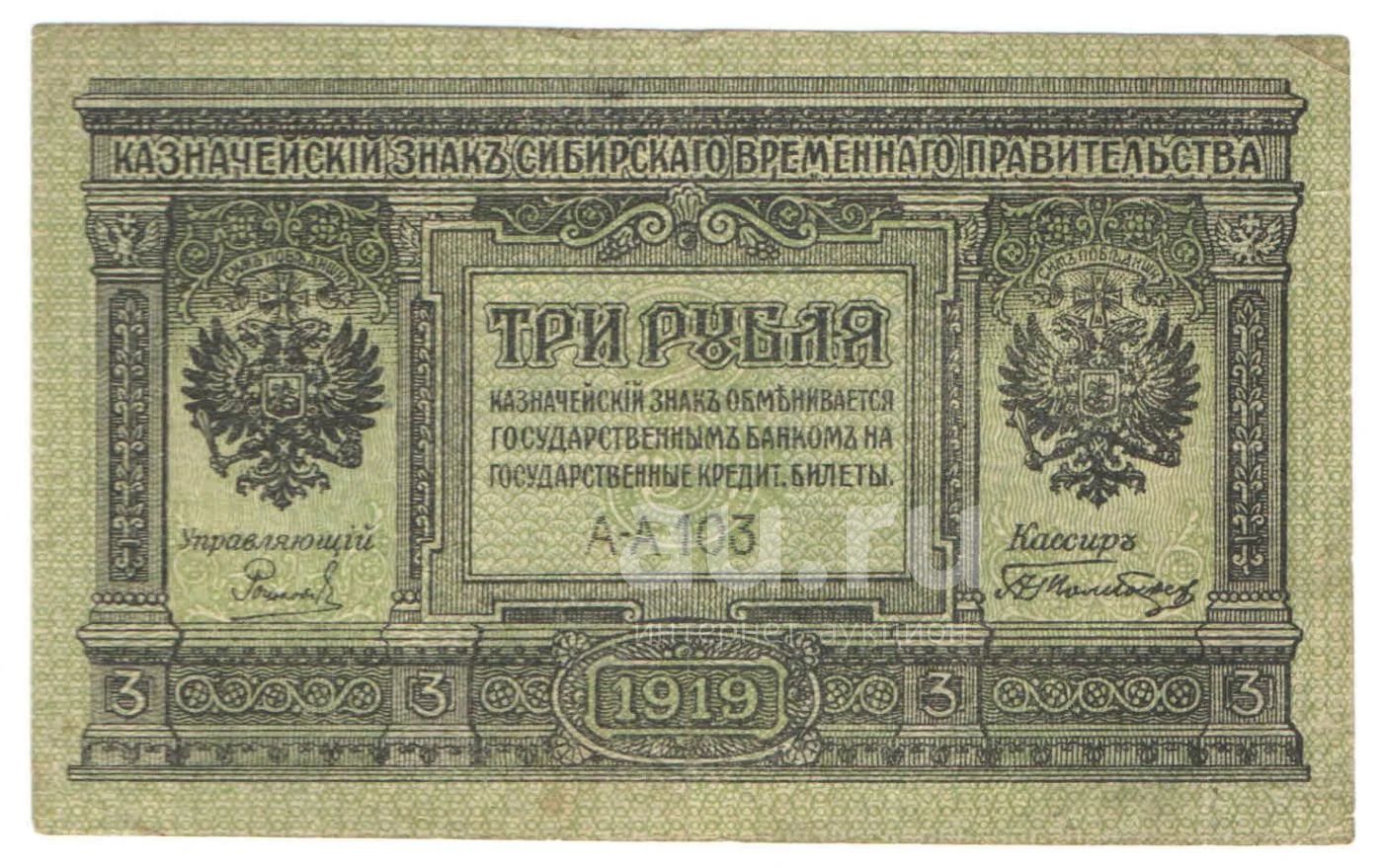 3 рубля 1919 год. Сибирское временное правительство
