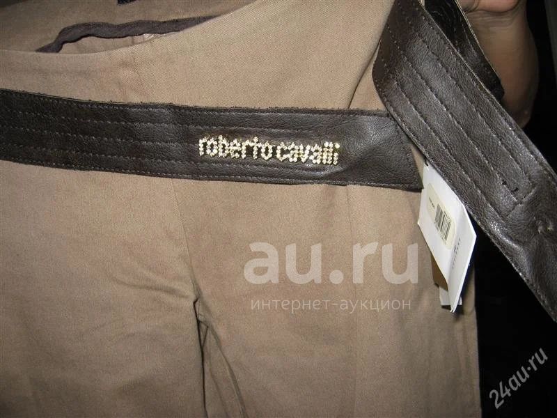 новые с этикеткой женские джинсы ROBERTO CAVALLI бежевого цвета. размер 27. с кожаным поясом с именем лейбла украшенным стразами. боковой замок молния. состав: 97% хлопок, 3% лайкра. джинсы хотели ушить и по бокам у них от середины бедра заметана ширина. можно убрать нитки - будут шире или прострочить по наметанному. высота посадки по фигуре: перед 19 см., сзади 30 см. хорошо подойдут на девушку со стройными бедрами и наличием талии.