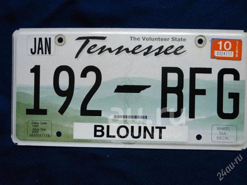 Автомобильный номер США. Штат Теннесси.