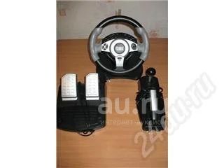 Комплект для компьютера, состоящий из руля с вибрацией и отдачей, коробки передач и ручника! Все в отличном состоянии! Подключается к ПК через USB.