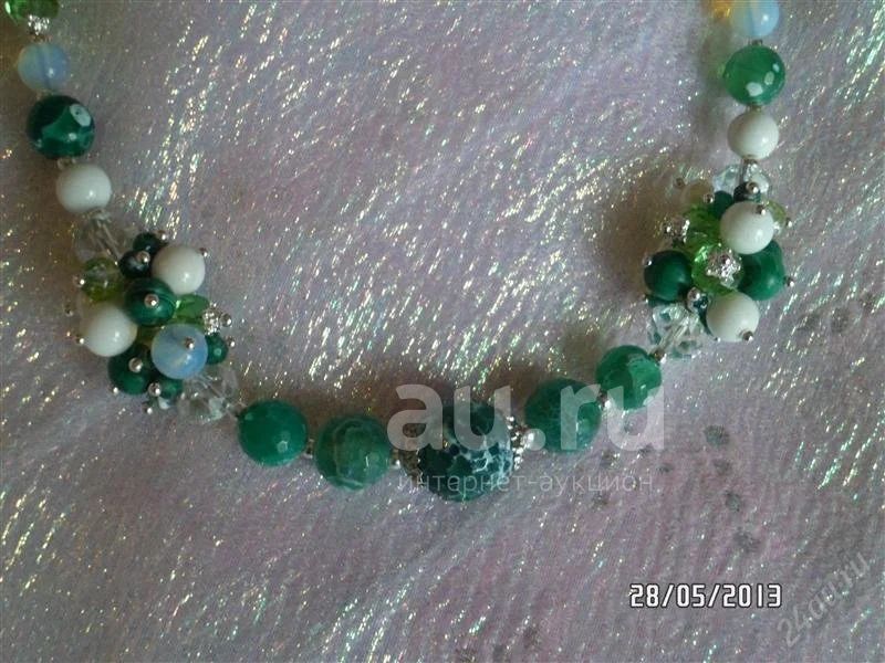 Натуральный камень , белый агат ,лунный камень , жемчуг , зеленый агат , хрустальная бусина , малахит , фурнитура под серебро , каучуковый шнур .