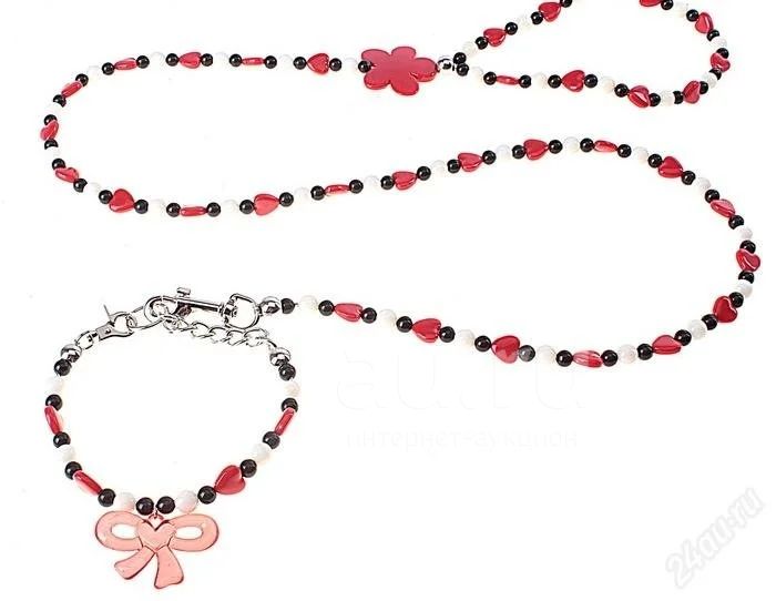 Гламурный поводок из бусин на стальном тросике для мелких собак и кошек