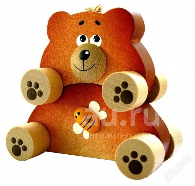 Замечательная, красочная каталка-пирамидка "Мишка" высокого качества исполнения, результат ручной работы. Мишка состоит из 2-х частей, каждая из которых представляет собой машинку-каталку.