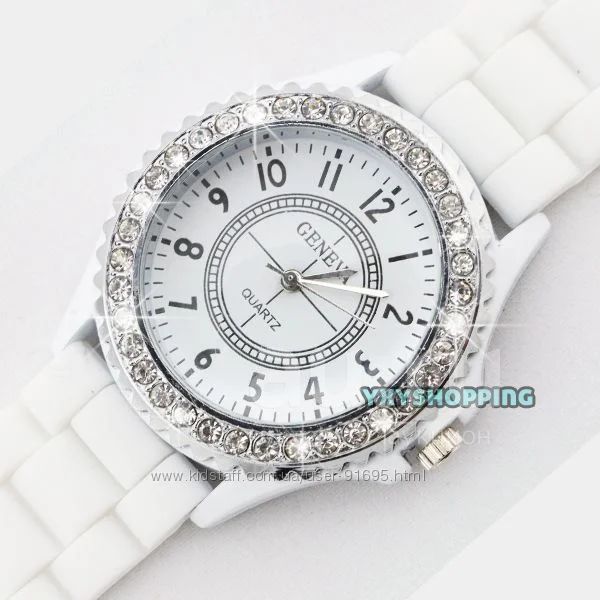 Новые очень красивые белые часы Geneva со стразами.