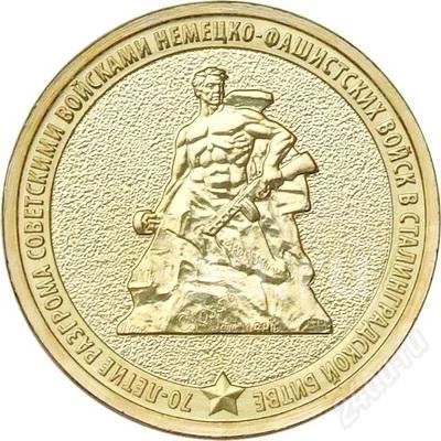 10 рублей "70-летие разгрома советскими войсками немецко-фашистских войск в Сталинградской битве" из мешка 3 шт.