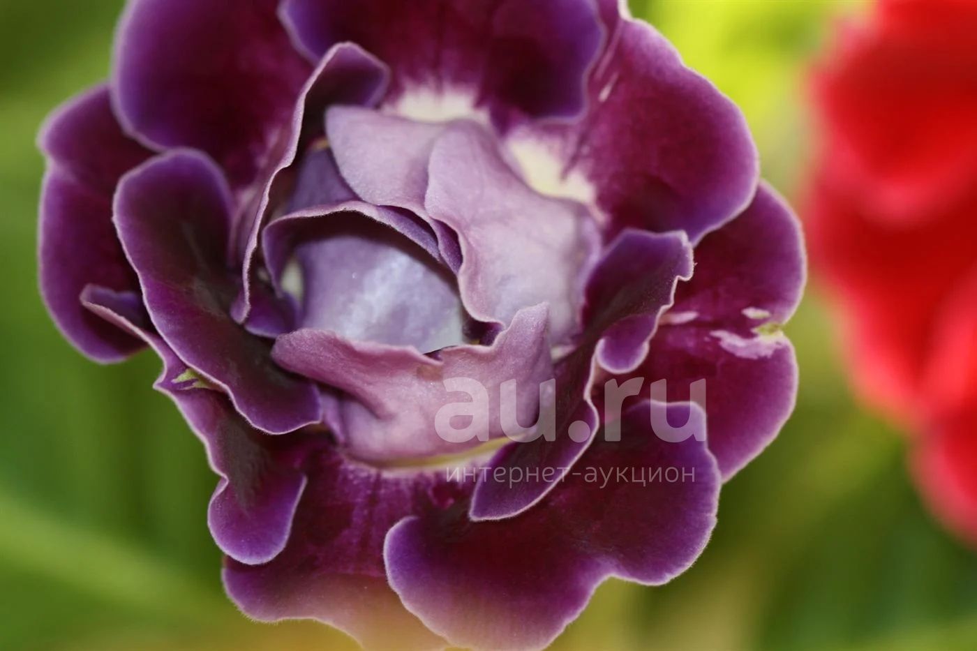 Фиолетовый с белым центром, махровый.