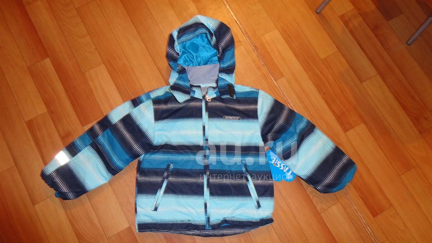 Куртка на ребенка ростом 98-104 см. Утеплитель - тонкий холлофайбер. Температурный режим +12+5, с флисом можно и до 0 носить. Капюшон застегивается на липы, очень удобный, садится как надо. Куртка новая, с этикеткой.
