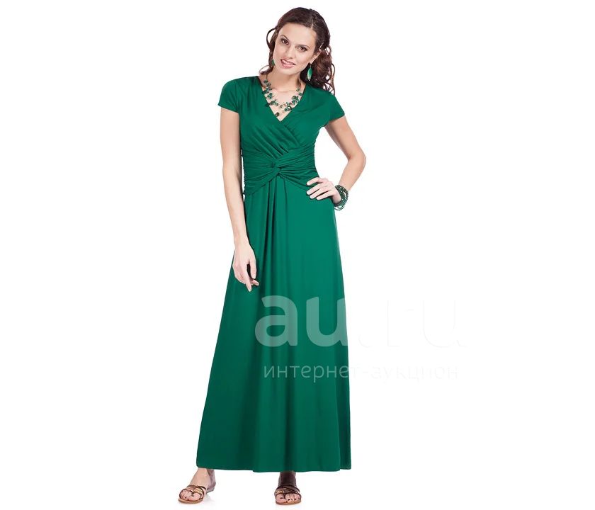 Платье из трикотажного полотна, без подкладки, без молнии. Отрезное под грудь с эффектным перекрутом. Длина от плечевого шва 148+-2см.