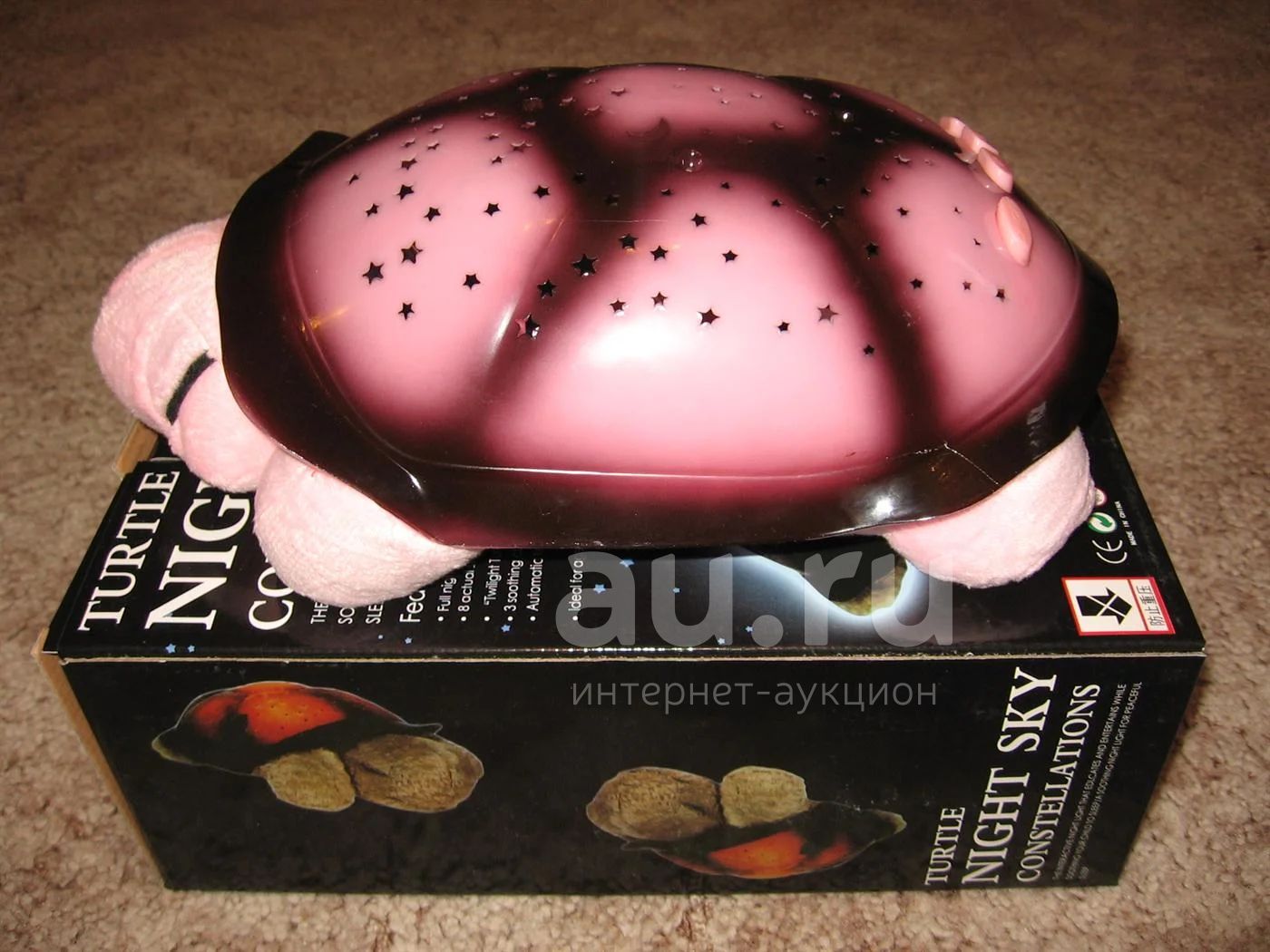 Это новая модель лампы-проектора «звездное небо» 4 цвета «звезд», 4 мелодии и разные функции «неба». В этой черепашке есть разные режимы включения звездного неба. Цвета могут меняться автоматически(2 режима), звездочки могут медленно появляться и исчезать,можно выбрать любой из 4-х по отдельности и 2 режима 2-х цветов, можно включить сразу 4 цвета звездочек.